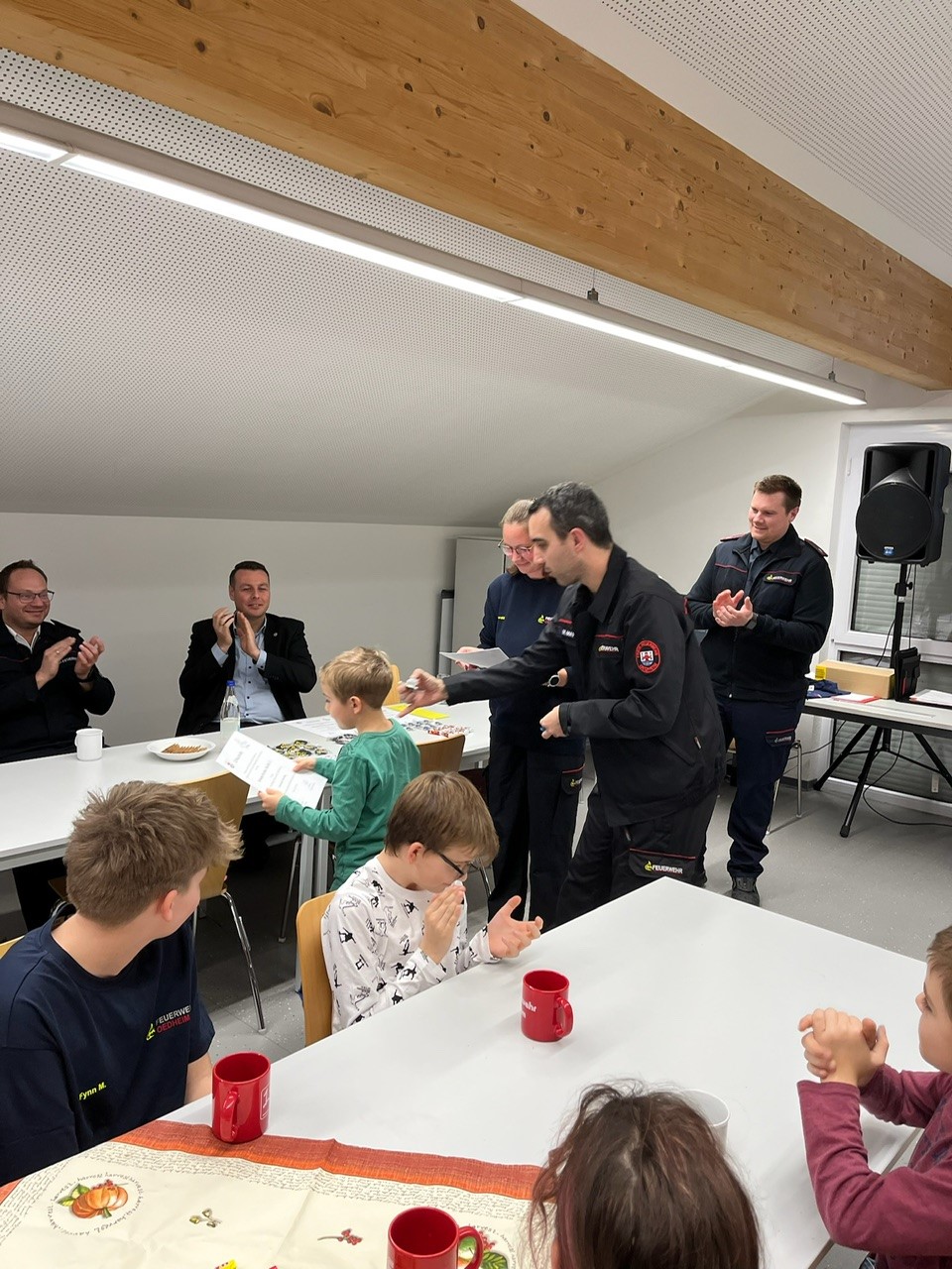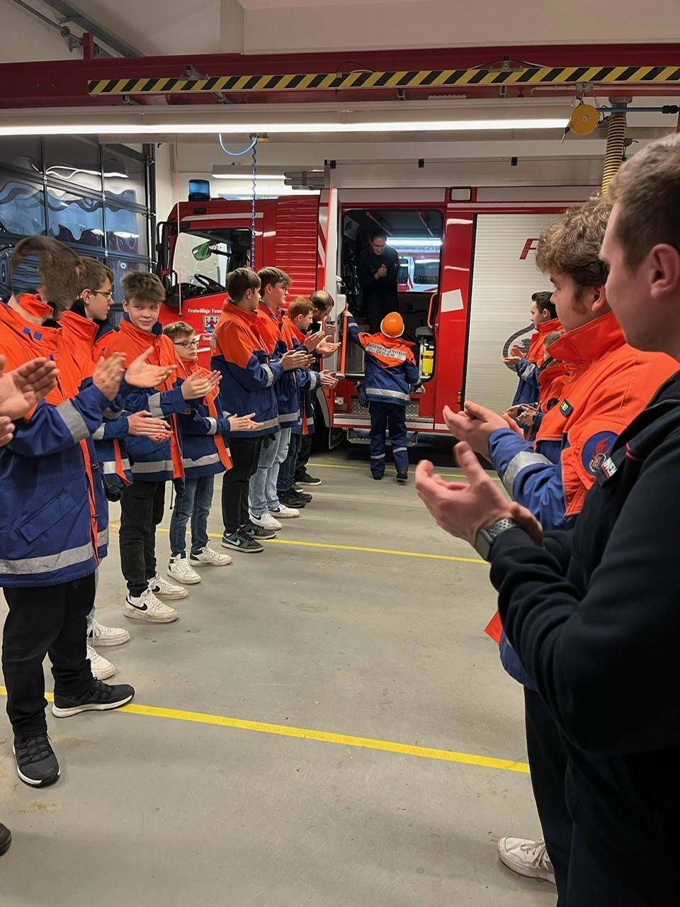 bschiedet und durften anschließend auf der einen Seite ins HLF klettern und dort ihre neue Uniform der Jugendfeuerwehr anziehen. Anschließend kletterten sie dann auf der anderen Seite wieder aus dem Fahrzeug und wurden von der Spalier stehenden Jugendgruppe mit tosendem Applaus empfangen und durch Jugendwart, Kommandant und Bürgermeister offiziell in der Jugendgruppe willkommen geheißen. Ab nächstem Jahr dürfen somit Lara May, David Janz, Elias Gerlach, Sebastian Prinz und Jonas Frank offiziell in der Jugendgruppe ihre Laufbahn der Jugendfeuerwehr Oedheim weiter bestreiten. Im Ausblick auf das Jahr 2024 wurden durch Jugendwart P
