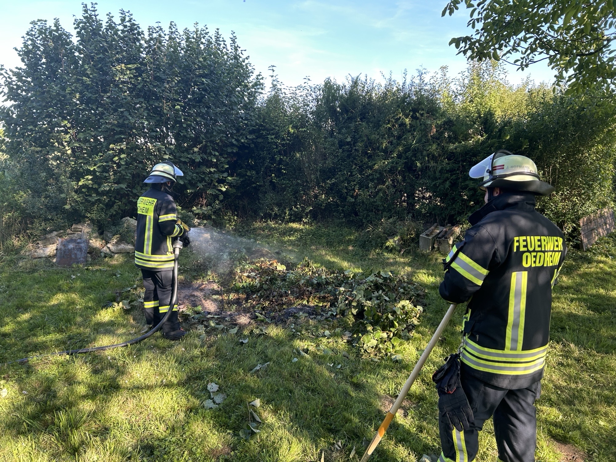 Die Feuerwehr Oedheim wurde durch die ILS Heilbronn zu einem Kleinbrand auf einer Freifläche bei Amorbach alarmiert. Es konnte von der L1088 bereits auf Sicht ein unbeaufsichtigtes Nutzfeuer erkundet werden, dieses wurde durch den Schnellangriff abgelöscht.