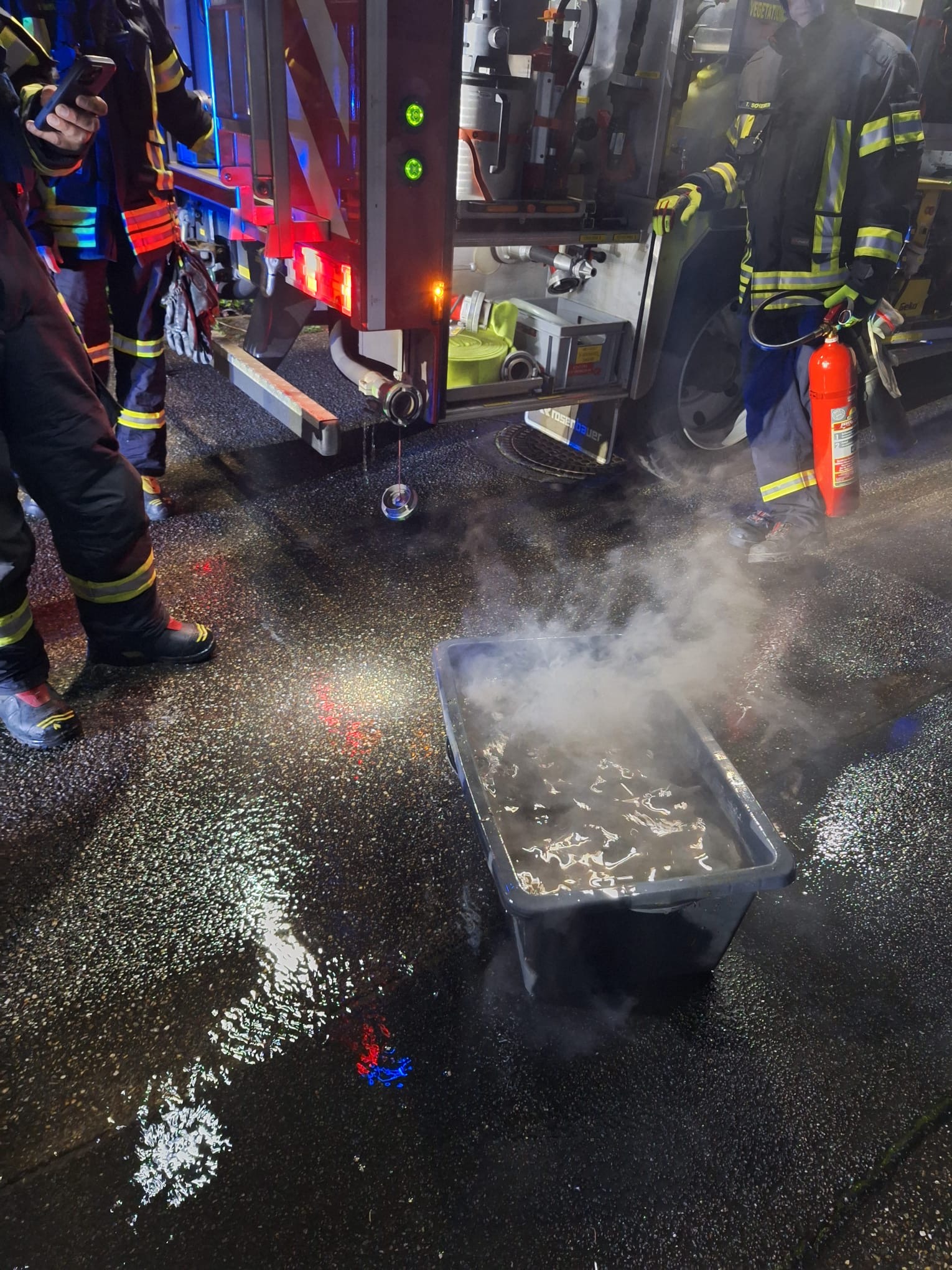 Die Feuerwehr Oedheim wurde zu einem in Brand geratenen Batteriespeicher eines Balkonkraftwerkes alarmiert. Bei Eintreffen konnte eine Hitze- und Rauchentwicklung des Speichergerätes festgestellt werden, welches unverzüglich durch einen Trupp unter Atemschutz in ein Wasserbad gelegt wurde. Bis zu dem Zeitpunkt als der erste Kühleffekt durch das Wasserbad eingetreten war, wurde vorsorglich noch der Brandschutz sichergestellt. Weitere Maßnahmen waren durch die Feuerwehr dann nicht mehr notwendig. Der Batteriespeicher wird bis zur fachgerechten Entsorgung durch den Hersteller im Wasserbad verbleiben. Die Einsatzstelle wurde der Polizei und dem Eigentümer übergeben.